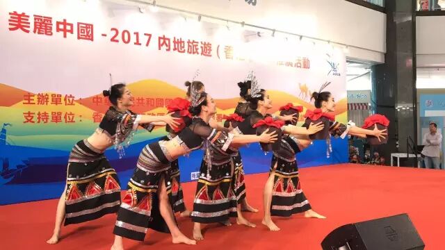 中午13:00整,随着海南黎族《欢乐叮咚》的开场舞蹈,主持人宣布美丽中国-2017港澳地区主题旅游宣传推广活动正式开始。