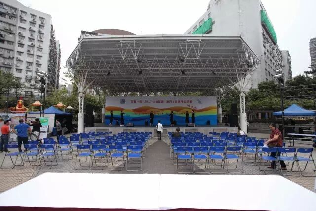 澳门是中华人民共和国两个特别行政区之一,位于中国东南沿海珠江三角洲西侧,由澳门半岛、凼仔岛、路环岛和路凼城四部分组成,是全球人口密度最高的地区之一。本次美丽中国-2017港澳地区主题旅游宣传推广活动的地点设置在了祐汉街市公园,地处澳门历史悠久的老城区。